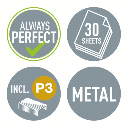 Stosowanie zszywek Leitz Power Performance - które dzięki kontrolom jakości zawsze mają ostre krawędzie - zapewnia perfekcyjne zszywanie