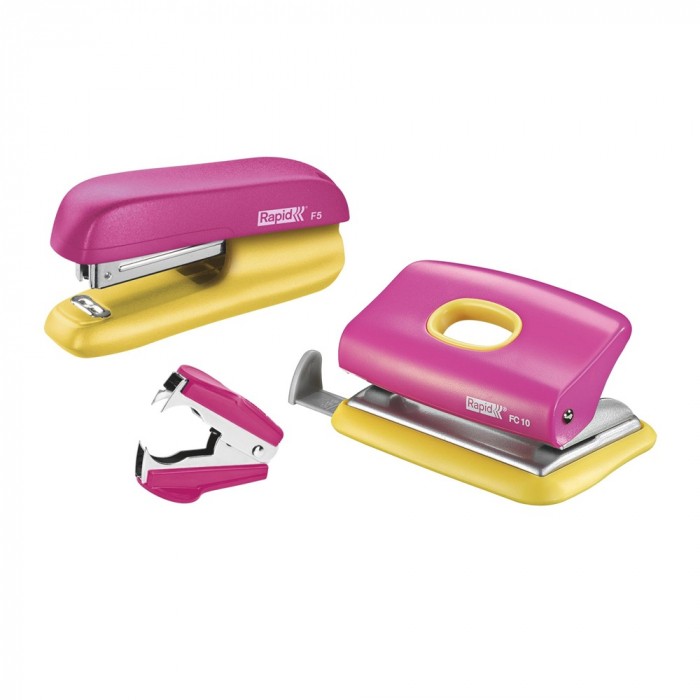 Zestaw Rapid zszywacz F5 i dziurkacz FC10 różowo-żółty