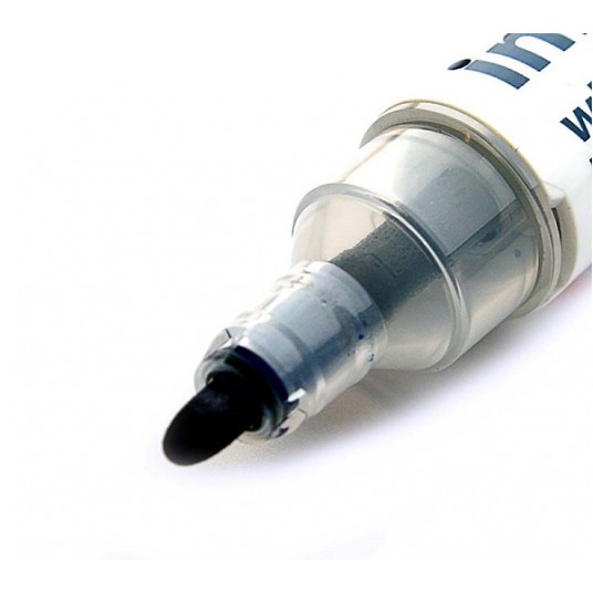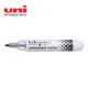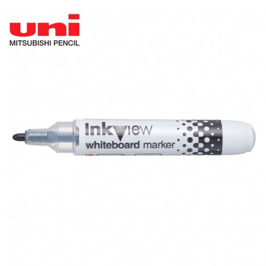 Marker do tablic suchościeralnych UNI PWB 202 • jedyny na rynku marker z okienkiem do śledzenia tuszu pozostałego do pisania • pojawienie się pierwszego pęcherzyka informuje że pozostało nam tuszu na 20 m pisania • nowatorski tusz daje gładkie linie i wyraźne, intensywne kolory • tusz łatwy do usunięcia, nie pozostawia śladów na tablicy • znacząco ograniczona ilość kurzu powstającego w wyniku ścierania napisów z tablicy • okrągła końcówka, grubość linii pisma: ok. 1,8-2,2 mm • kolor tuszu: czarny, niebieski, czerwony, zielony