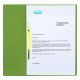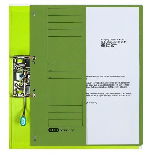 Skoroszyt A4, wykonany kartonu Manilla barwionego w masie. Frontowa okładka została zmniejszona o połowę, dzięki czemu dokumenty są widoczne bez otwierania skoroszytu. Uniwersalny zaczep oczkowy pozwala na wpięcie skoroszytu do każdego segregatora. Specjalne bigowanie na grzbiecie umożliwia jego poszerzenie dla zwiększenia pojemności.