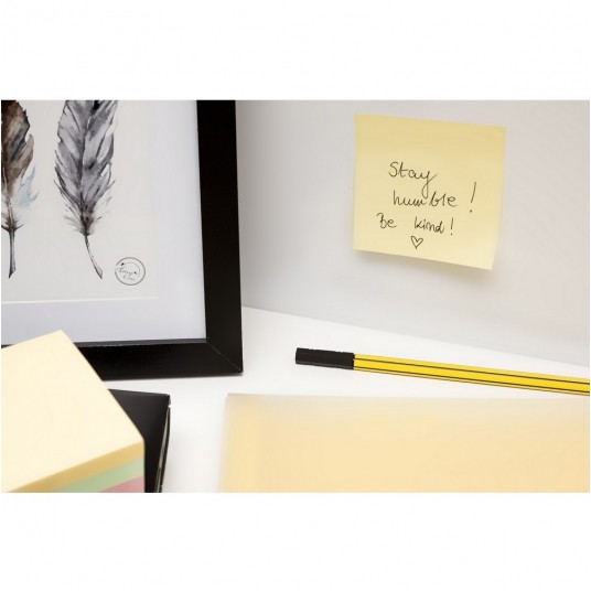 Bloczek samoprzylepny jest idealny do sporządzania notatek czy pozostawiania krótkich wiadomości i przypomnień. Pastelowe kolory są świetną alternatywą dla osób wolących delikatne odcienie od jaskrawych kolorów neonowych. Znajdzie swoje zastosowanie w biurze, domu, a także szkole. Karteczki można wielokrotnie przyklejać i odklejać. Bloczek o wymiarach: 75 x 75 mm zawiera 450 karteczek z papieru wysokiej jakości w kilku pastelowych kolorach.