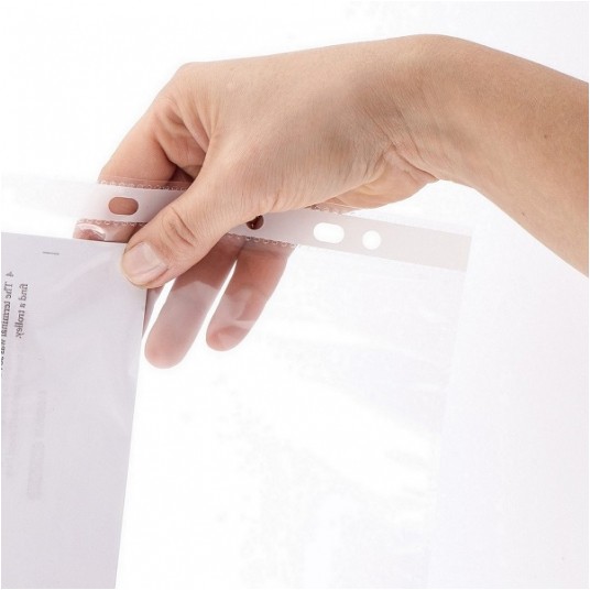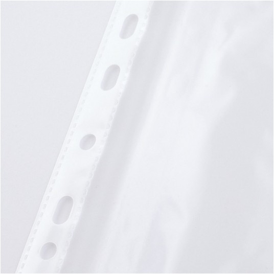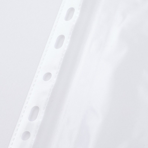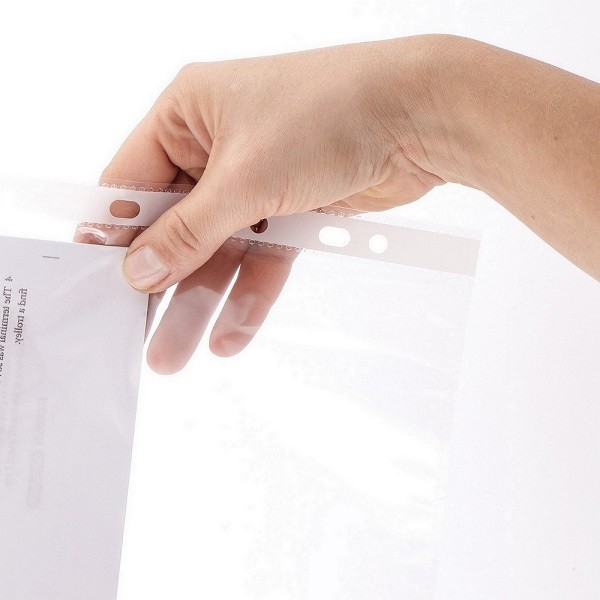 Wzmocniony pasek z uniwersalną perforacją umożliwia wpięcie koszulek do każdego typu segregatora.
