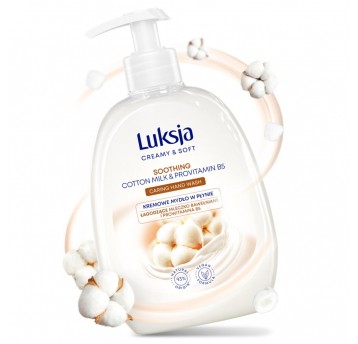 Kremowy, przyjazny dla skóry płyn do kąpieli Luksja Mleczko bawełniane i Prowitamina B5 zawiera Bio Milk Complex, mleczko bawełniane i prowitaminę B5, wykazujące nawilżające właściwości. Rozpieści Twoją skórę, pozostawi ją miękką i gładką. Zanurz się w wannie pełnej bogatej, pielęgnującej, przyjemnie pachnącej piany!