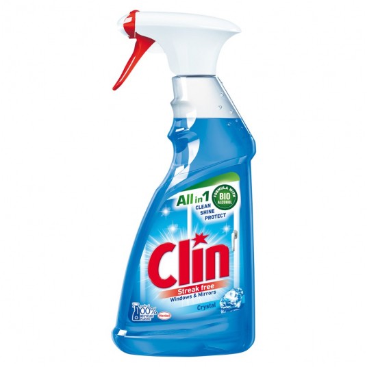 Clin 3w1 Crystal – płyn do mycia powierzchni szklanych z wygodnym rozpylaczem, który zapewni czystość bez smug oraz mikrouszkodzeń.