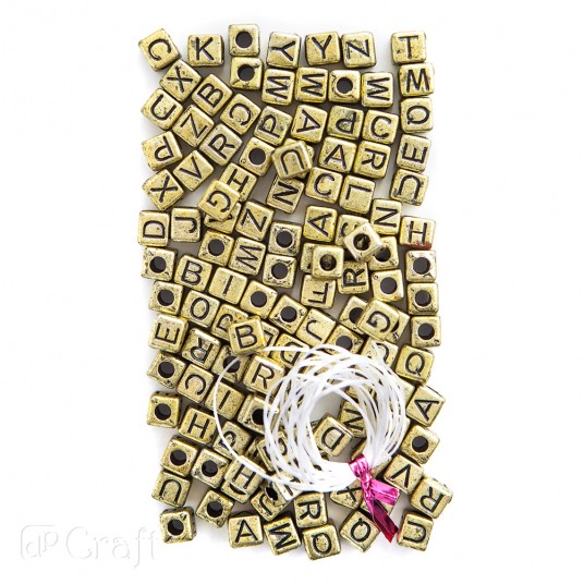 Koraliki czarne literki na złotej bazie 30g