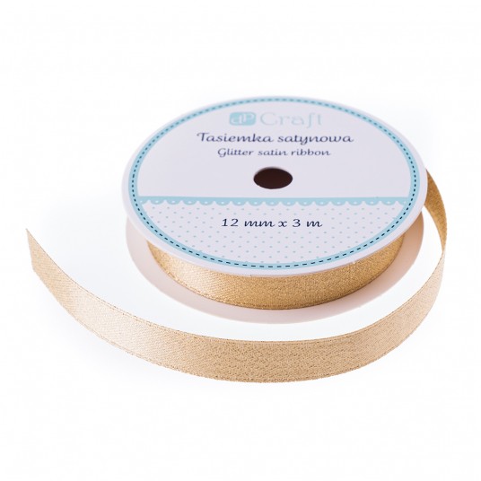 Tasiemka satynowa z brokatem Złota 3m