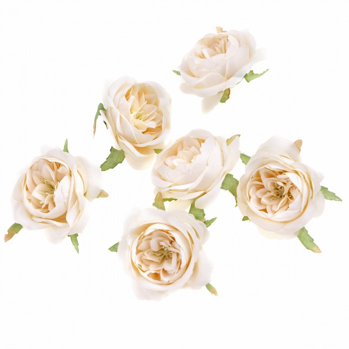 Liczba sztuk w opakowaniu: 6 szt. Szerokość pojedynczej główki: 5 cm Kolor: kremowy Cechy szczególne: realistyczne, wysokiej jakości materiałowe kwiaty