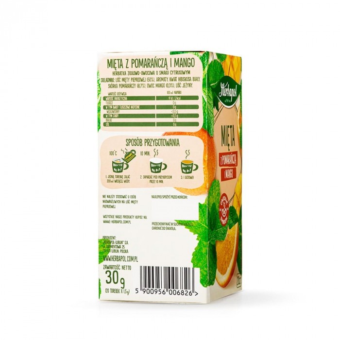 Klasyczna herbatka miętowa z dodatkiem pomarańczy i mango. Każdy jej łyk to źródło przyjemnego orzeźwienia z lekką nutą owocowej, egzotycznej słodyczy. Tak wyjątkowe połączenie znajdziesz tylko u nas – spróbuj koniecznie i ciesz się nie tylko jej smakiem, ale też odprężającymi właściwościami mięty.