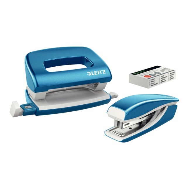 Zestaw zszywacz i dziurkacz metalowy mini Leitz NeXXt WOW Niebieski