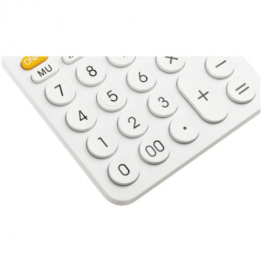 Prezentowany model jest zbudowany z solidnego tworzywa sztucznego, w kolorze białym z białymi, okrągłymi klawiszami. Solidność gwarantuje wytrzymałość i możliwość długiego, bezawaryjnego wykorzystywania. Zasilany jest dołączoną do zestawu baterią oraz dodatkowym panelem solarnym. Kalkulator z pewnością zwraca uwage swoim wyglądem. Będzie ozdobą każdego biurka i elementem dzięki któremu możemy wyrazić siebie i wnieść trochę koloru do biurowej monotonii.