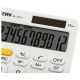 Kalkulator posiada 12-cyfrowy wyświetlacz, Pamięć 4-klawiszowa: MC, MR, M+, M-, Kasowanie ostatniej pozycji, Pierwiastek kwadratowy [√], Podwójne zero [00], Procenty [%], Zmiana znaku [+/-], Suma całkowita [GT].
