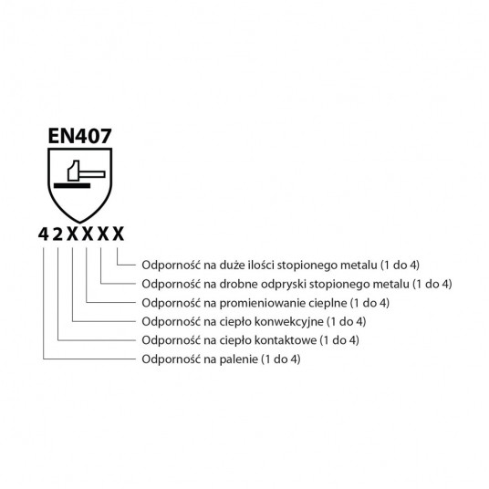 - zgodność z normami EN 388:2016 (4243X), EN 407:2004 (42XXXX), EN ISO 21420:2020