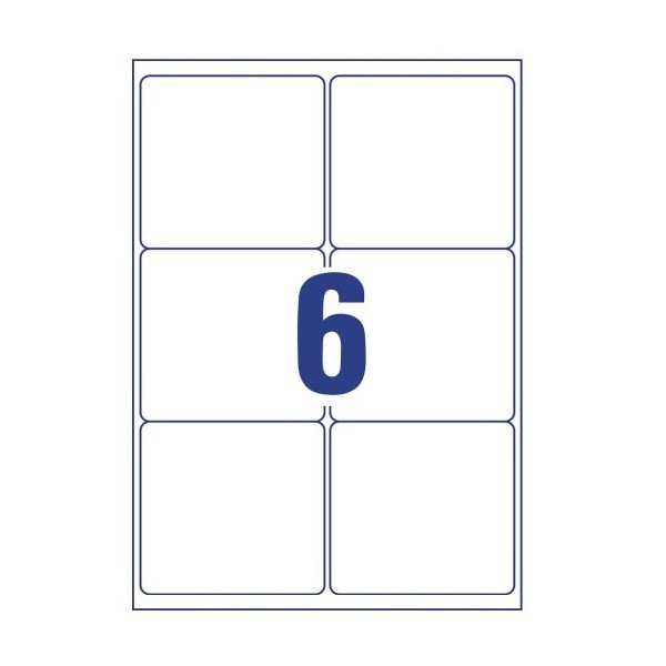 Etykieta Multi3 uniwersalna 99,1 x 93,1 mm z zaokrąglonymi rogami , papierowa, biała. 6 etykiet na arkuszu A4