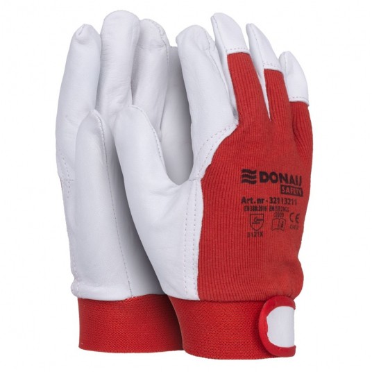 Rękawice robocze Donau Safety, skóra kozia po stronie dłoni, rzep, rozm. 10/XL, biało-czerwone