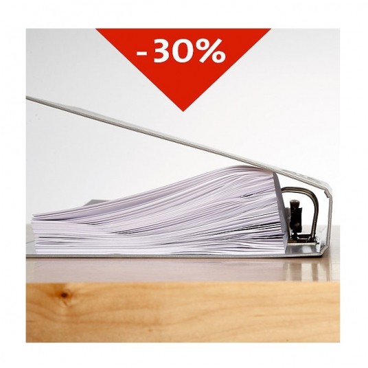 Zszywacz biurowy firmy Novus z systemem bardzo płaskiego zakleszczania zszywek (Flat-Clinch), dzięki czemu o 30% wzrasta lepsze wykorzystanie pojemności segregatora.