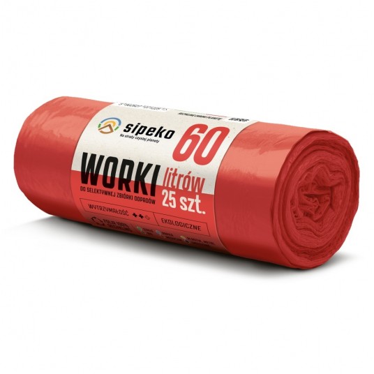 Worki na śmieci Sipeko LDPE 60L czerwone