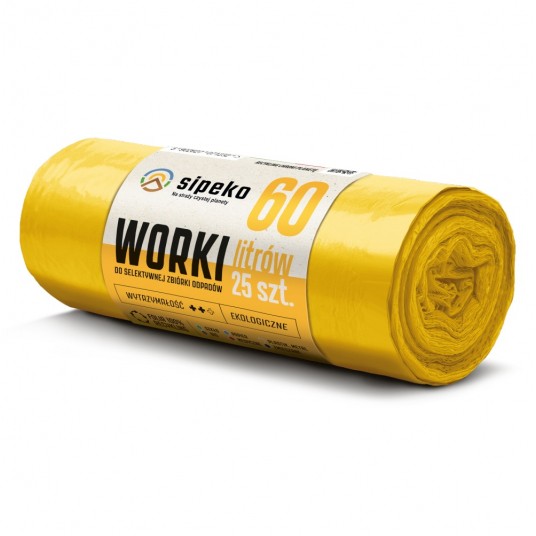 Worki na śmieci Sipeko LDPE 60L żółte