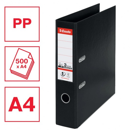 Segregator Esselte No.1 Vivida PP A4/75mm czarny, folia w 30% z recyklingu przedużytkowego
