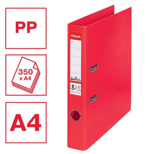 Segregator Esselte No.1 Vivida PP A4/50mm czerwony, folia w 30% z recyklingu przedużytkowego