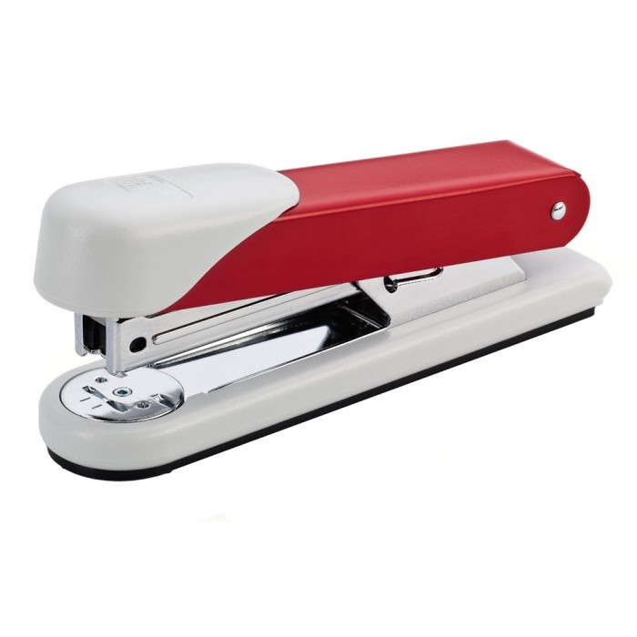 Rewelacyjny zszywacz Novus Stabil do codziennego użytku. Wykonany w całości z metalu, posiadający gumowe miękkie zakończenie do komfortowego zszywania. Umożliwia zszycie permanentne, czasowe i tapicerskie dzięki obrotowej matrycy. System ładowania zszywek od góry. Magazynek na zszywki 24/6 i 26/6. Maksymalna głębokość wsuwania kartki 65 mm. Kolor czerwony. Posiada certyfikat TUV NORD GS.