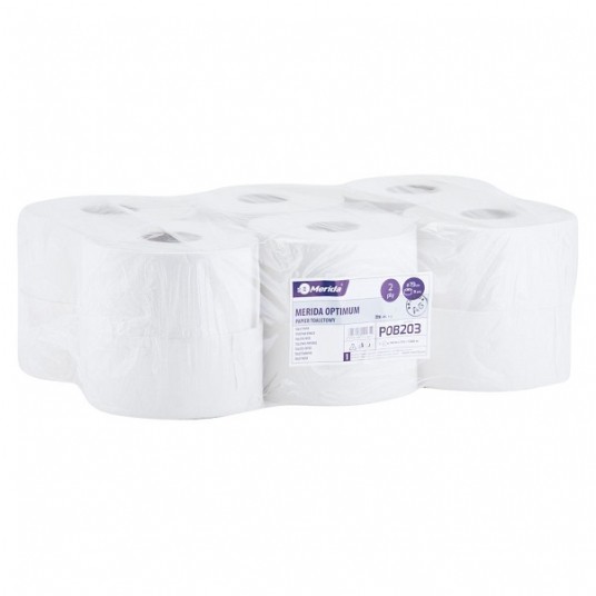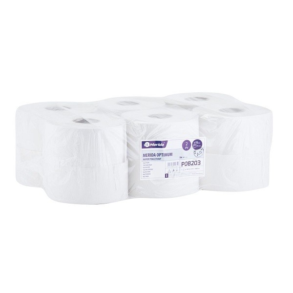 Papier toaletowy MERIDA OPTIMUM, BIAŁY, średnica 19 cm, długość 140 m, dwuwarstwowy, zgrzewka 12 szt.