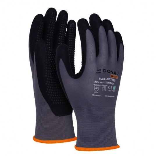 Rękawice Donau Safety Flex-Dotted, kat. II, rozm. 9, szare