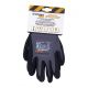 - rękawice wykonane z dobrej jakości dzianiny nylonowej z elastanem w kolorze szarym, powleczone w części chwytnej ultradrobną pianką nitrylową z nakropieniem w kolorze czarnym