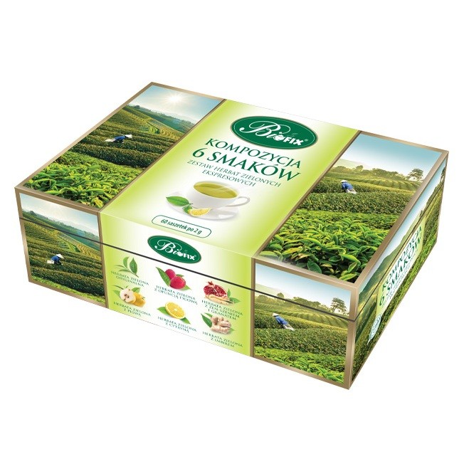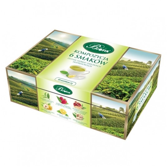 Herbata BIFIX Kompozycja 6 smaków herbat zielonych ekspresowych. Opakowanie 60 saszetek