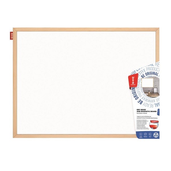 Właściwości suchościeralne pozwalają na pisanie po powierzchni tablicy markerami suchościeralnymi lub kredowymi. Natomiast właściwości magnetyczne dają możliwość umieszczania na tablicy rysunków, plakatów i ogłoszeń za pomocą magnesów. Powierzchnia tablicy wykonana jest z wysokiej jakości stali lakierowanej w kolorze białym. Z tyłu tablicy zastosowano pilśnię, która pełni rolę usztywnienia. Rama wykonana jest z naturalnego drewna sosnowego o szer. 16 mm i grub. 14 mm. W zestawie dołączony jest komplet haczyków oraz instrukcja montażu. Możliwość montażu tablicy w pozycji pionowej lub poziomej. Tablica polecana jest jako podstawowe wyposażenie dla wszystkich jednostek edukacyjnych i instytucji biurowych. Klasyczna i modernistyczna konstrukcja oraz kunsztowne wykończenie sprawiają, że tablica doskonale wkomponowuje się w wystrój każdej klasy szkolnej, sali wykładowej, biura czy pokoju w miejscu zamieszkania. Produkt przeznaczony jest do użytku wewnętrznego. Ponadto tablica stanowi znakomite wsparcie dla nauczycieli jako pomoc dydaktyczna oraz olbrzymie udogodnienie dla liderów spotkań biznesowych, którzy mogą wzbogacać swoje prezentacje i wykłady o komunikaty wizualne, co z kolei wpływa na ich szybkie zapamiętywanie. W domu tablica jako nośnik informacji przejmie rolę świetnego pomocnika planistę i organizatora codziennych zajęć zarówno dla dzieci, młodzieży i dorosłych. Pozwoli na uporządkowanie notatek, prezentację rysunków dziecka i innych ważnych informacji. Tablicę cechuje niezwykła trwałość i sztywność dzięki zastosowaniu wysokiej jakości materiałów, które zapewniają bezpieczeństwo podczas ich montażu i użytkowania. Dzięki wysokiej jakości powierzchni, prezentowane na tablicy treści są dobrze widoczne i czytelne. szczególną zaletą jest bardzo dobra ścieralność markera bez pozostawiania smug i plam na powierzchni tablicy. Okres gwarancji na powierzchnię wynosi 10 lat. Czyszczenie tablicy - za pomocą miękkiej gąbki lub ściereczki. Do pisania po tablicy należy używać wyłącznie markerów przeznaczonych do tablic. Zaleca się systematycznie czyszczenie i konserwację powierzchni za pomocą dedykowanych płynów do tablic. Tablice suchościeralne magnetyczne MemoBe posiadają Certyfikat Zgodności, który potwierdza, że wyrób spełnia wymagania zawarte w normie PN-EN 14434:2010, tzn. jest bezpieczny podczas jego montażu i użytkowania. Produkt opatrzony jest znakiem B (Bezpieczeństwo).