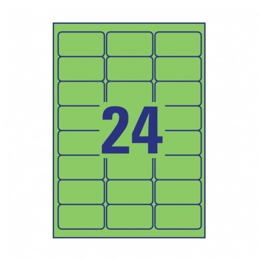 Zielone, łatwousuwalne etykiety samoprzylepne L6033-20 w formacie 63,5x33,9 mm od AVERY ZWECKFORM doskonale nadają się np. do oznaczania kolorami dokumentów i produktów. 480 etykiet na 20 arkuszach w opakowaniu. Gwarantowany druk etykiet bez zacięć oraz bez pozostałości kleju w drukarce.