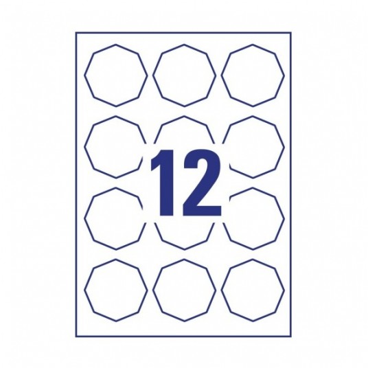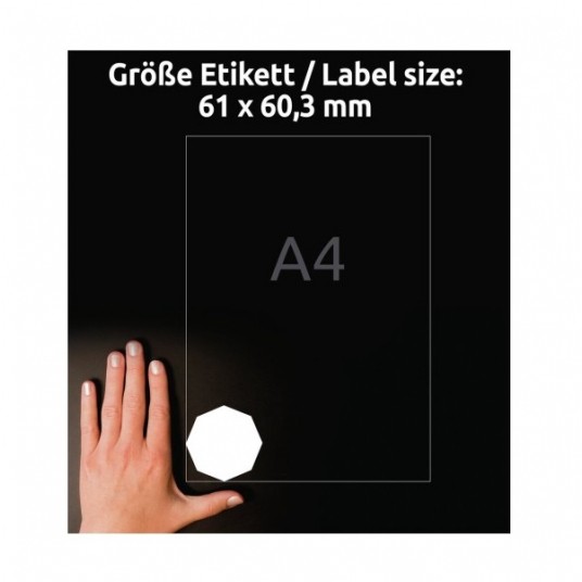 Ośmiokątne etykiety 61 x 60,3 mm, atramentowe, laserowe, kolorowe, A4