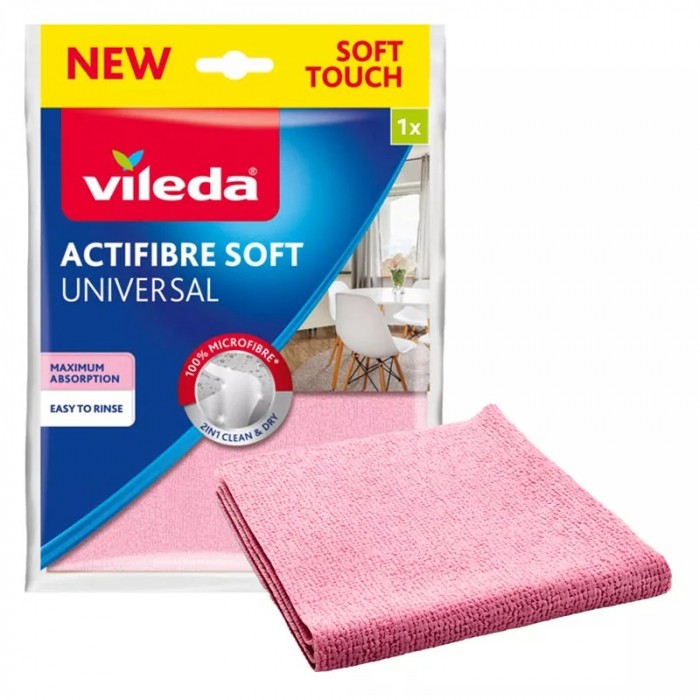 Ściereczka uniwersalna Vileda Actifibre Soft posiada znakomite właściwości czyszczące – usuwa nawet uporczywe zabrudzenia przy użyciu samej wody.