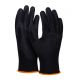 - rękawice wykonane z dobrej jakości dzianiny poliestrowej w kolorze czarnym, powleczone w części chwytnej czarnym poliuretanem