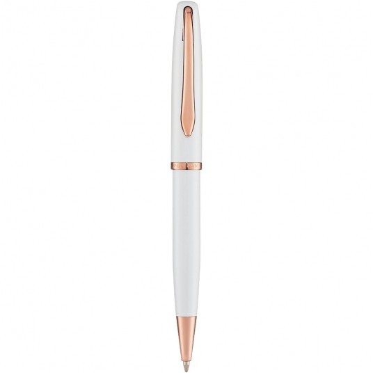 - Biały, perłowy korpus z elementami w kolorze różowego złota