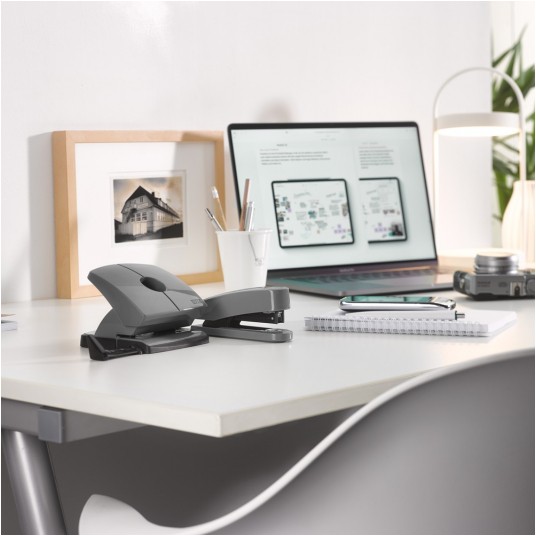 Poręczny zszywacz Novus B2 z serii ColorID 2 w atrakcyjnych pastelowych kolorach. Poręczny, do użytku w domu i małym biurze. Wykonany z metalu w obudowie z tworzywa sztucznego. Umożliwia zszycie permanentne, czasowe i tapicerskie dzięki obrotowej matrycy. System ładowania zszywek od góry. Magazynek na dwa rodzaje zszywek: 24/6 i 26/6. Maksymalna głębokość wsuwania kartki to 65 mm. Dołączone 200 zszywek 24/6 SUPER. Kolor szary (smart grey).