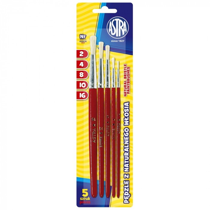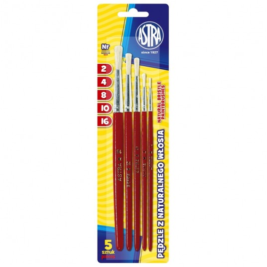 Zestaw 5 pędzli z naturalnego włosia nr 2/4/8/10/16 Astra