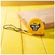 Obudowa z tworzywa ABS w jaskrawej żółci ułatwia odnalezienie miary na placu budowy. Mechanizm blokady taśmy pozwala zablokować pomiar na wybranej długości, a automatyczne zwijanie działa łagodnie, bez gwałtownych powrotów — co polepsza bezpieczeństwo obsługi podczas szybkiego pomiaru. Model wyposażono też w zaczep, który pozwala zaczepić taśmę za krawędź lub listwę, ułatwiając pomiary samodzielne.