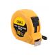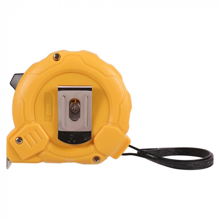 Zwijana taśma o grubości 0,11 mm została wykonana z wytrzymałego, sztywnego materiału, dzięki czemu nie plącze się i trzyma się prosto. Jej sztywność sięga 1,2 m, co oznacza, że nie łamie się do tej długości. Widoczna na niej podziałka jest bardzo czytelna i wyraźna. Co więcej, taśma automatycznie zwija się na tyle wolno, że nie musisz obawiać się ewentualnego skaleczenia. Miarka została też wyposażona w ergonomiczną obudowę z tworzywa ABS, która wyróżnia się wytrzymałością i wysoką odpornością na wstrząsy, upadek czy zużycie. Na taśmie umieszczono natomiast specjalny zaczep mierniczy umożliwiający precyzyjny pomiar wewnętrzny i zewnętrzny. Z boku miarki znajduje się wykonany ze stali nierdzewnej uchwyt, który pozwala przymocować ją do paska, a z tyłu został umieszczony sznurek, który umożliwia zawieszenie jej w warsztacie.