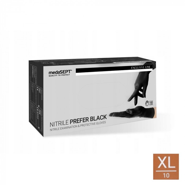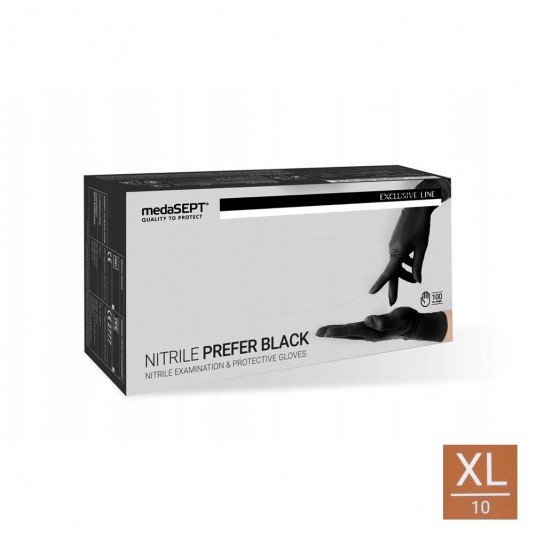 Rękawice medaSEPT Nitrile Prefer Black XL, nitrylowe, bezpudrowe.