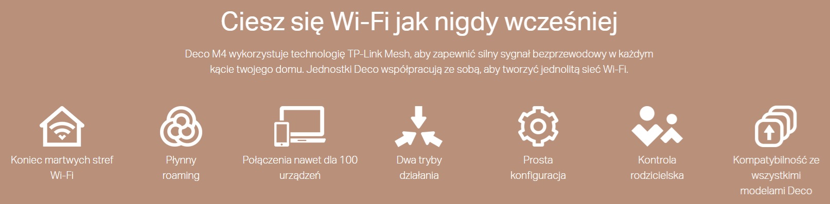 - Deco wykorzystuje kilka urządzeń do stworzenia jednolitej sieci Wi-Fi. Pożegnaj słaby sygnał i martwe strefy na zawsze!