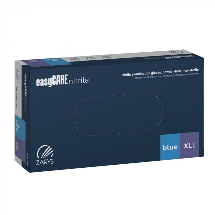 Rękawice diagnostyczne easyCARE nitrile - nitrylowe, bezpudrowe, niesterylne, niebieskie, rozmiar XL. Opakowanie 100 sztuk.
