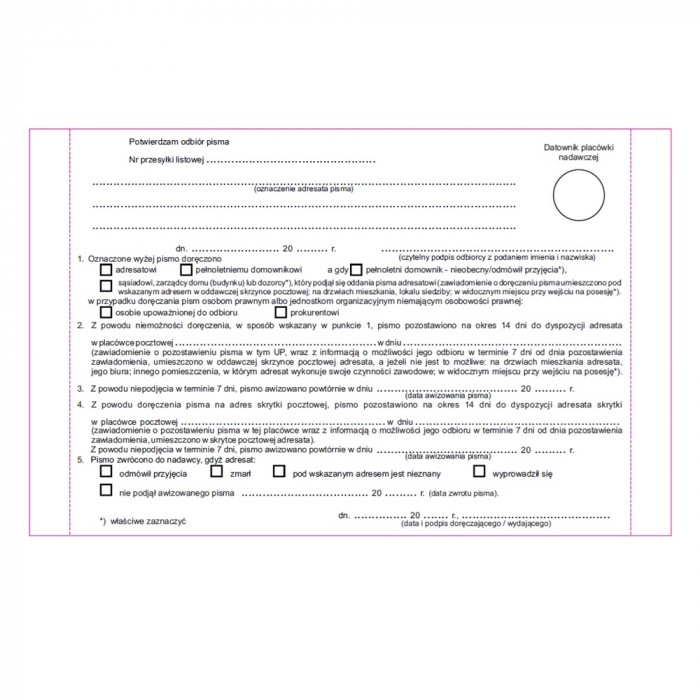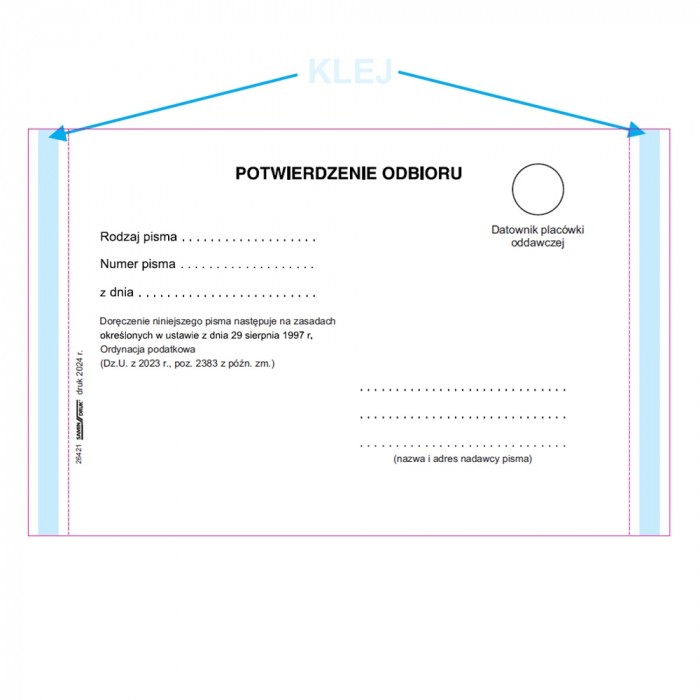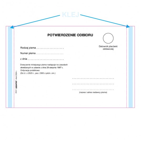 Zwrotne potwierdzenie odbioru OP samoprzylepne A6 Samindruk Ordynacja Podatkowa Dz.U. z 2025 pozycja 111