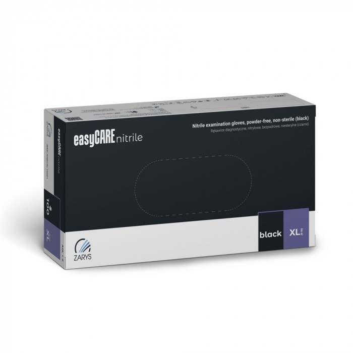 Rękawice easyCARE nitrile XL czarne, nitrylowe, bezpudrowe, niesterylne. Opakowanie 100 sztuk.