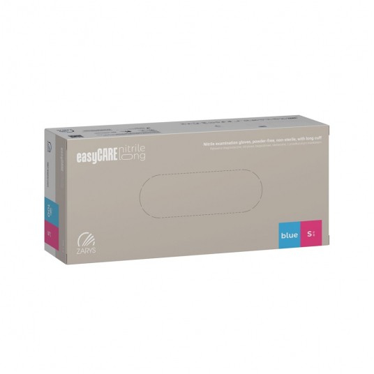Rękawice easyCARE nitrylowe LONG Blue, bezpudrowe, niebieskie, z przedłużonym mankietem, rozmiar S. Opakowanie 100 sztuk.