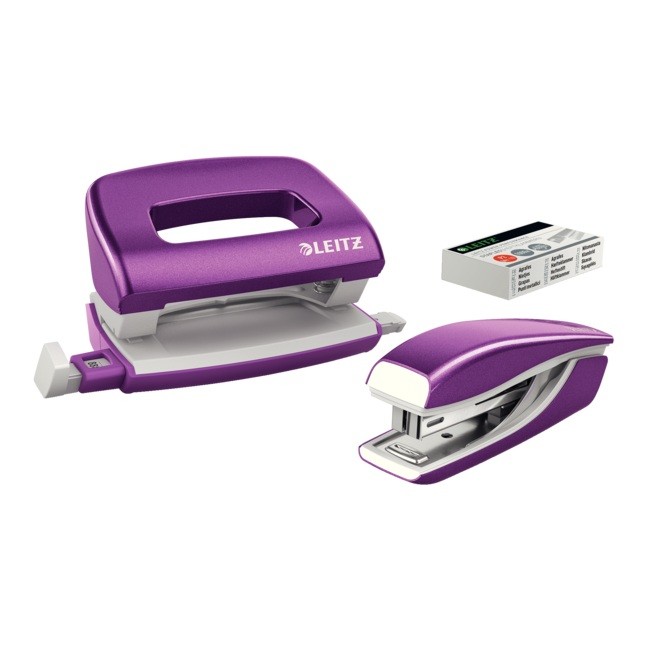 Zestaw zszywacz i dziurkacz metalowy mini Leitz NeXXt WOW Fioletowy