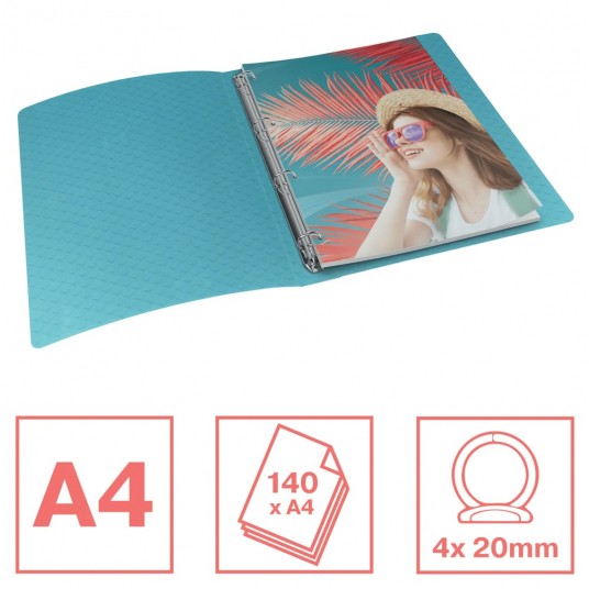 Wybierz radosne kolory natury i stwórz pozytywną przestrzeń do pracy dzięki produktom z kolekcji Colour’Breeze firmy Esselte. Zaprojektowane są w sposób mający zapewnić Ci dobrą organizację i motywację podczas nauki lub pracy, a ich nowoczesne wykończenie i relaksujące kolory sprawią, że zamarzysz o kolejnej przygodzie. Lekki segregator ringowy Esselte Colour'Breeze A4 z miękką okładką idealnie nadaje się do przechowywania dokumentów w domu i w biurze oraz do ich przenoszenia. Wykonany jest z elastycznego, łatwego do czyszczenia polipropylenu. Posiada 4 okrągłe ringi, które umożliwiają łatwe przewracanie stron oraz wygodne wyjmowanie i dokładanie kartek oraz etykietę na grzbiecie do opisu zawartości. Dostępny w gamie żywych kolorów i wykończony nowoczesnym tłoczonym wzorem Colour'Breeze. Poczuj powiew świeżości w swoim życiu!